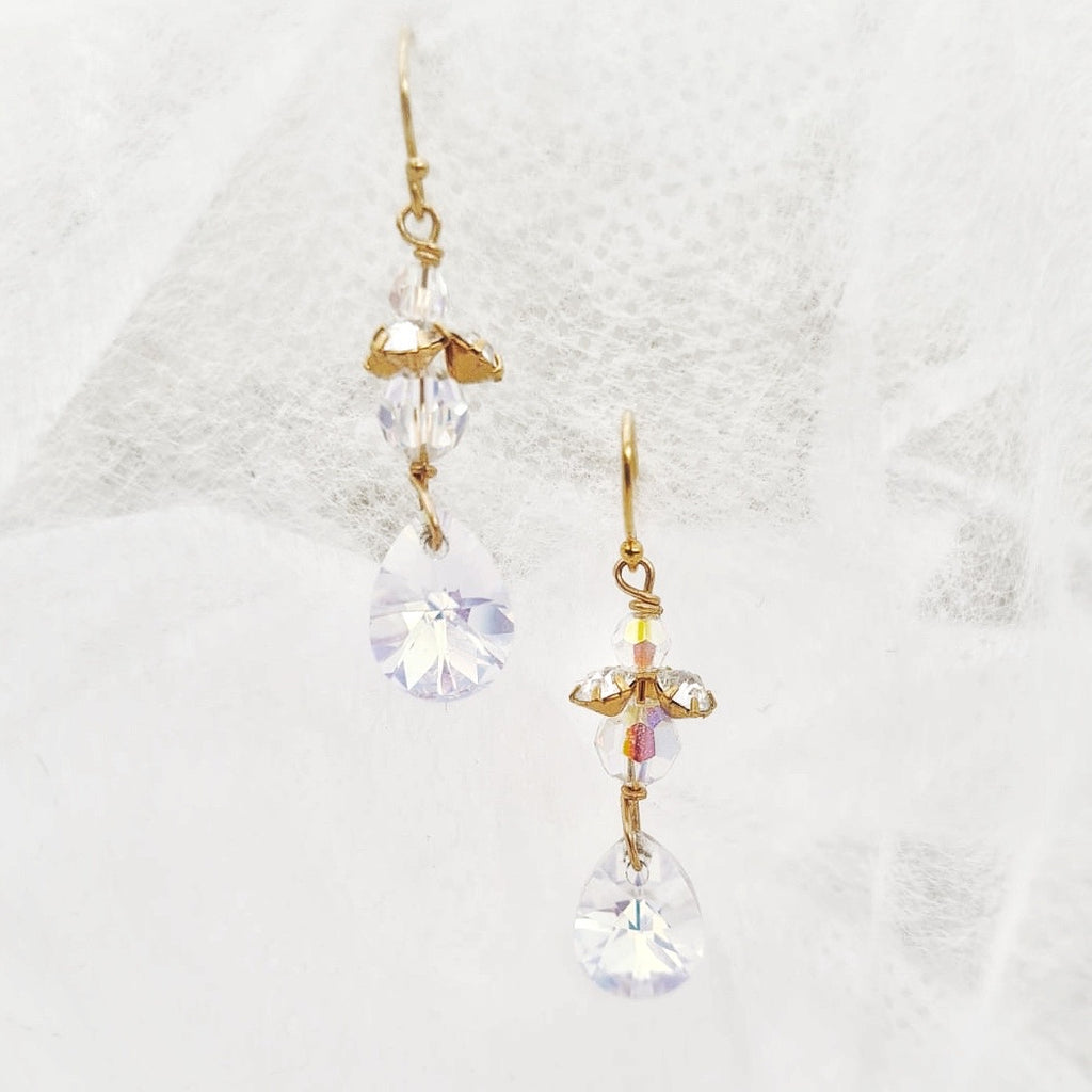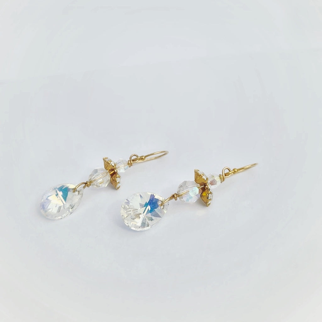 Øredobber i 14 karat gullbelagt metall med Swarovski dråper og Swarovski blomst.
