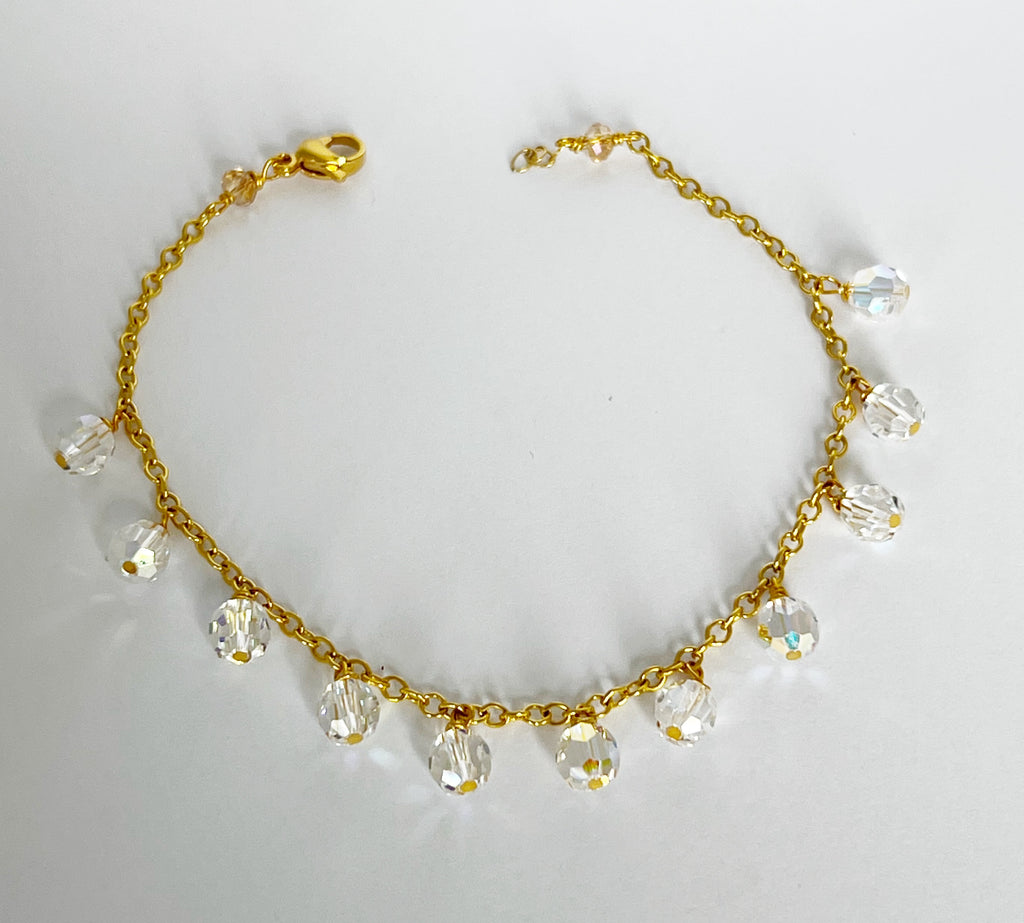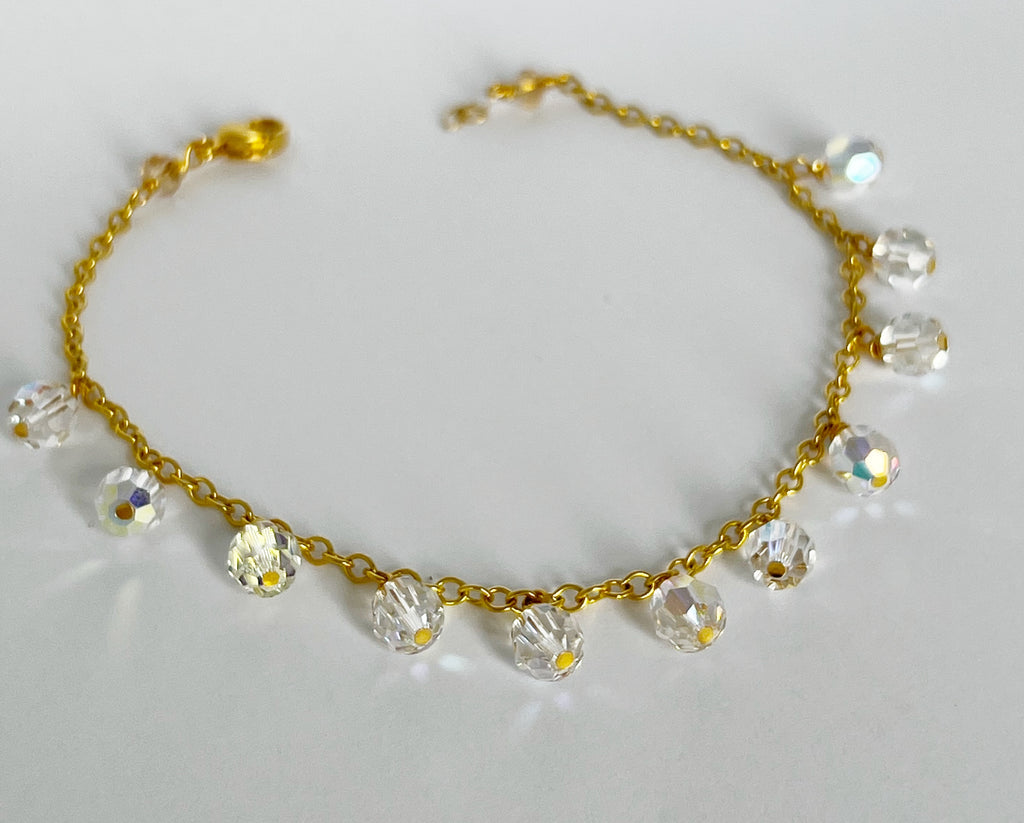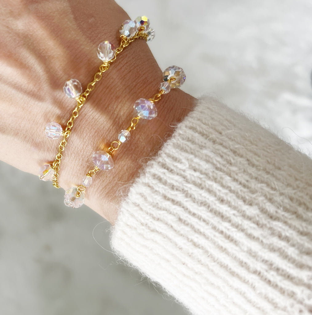 Nydelig og tidløst armbånd i gullbelagt lenke med kystaller