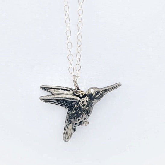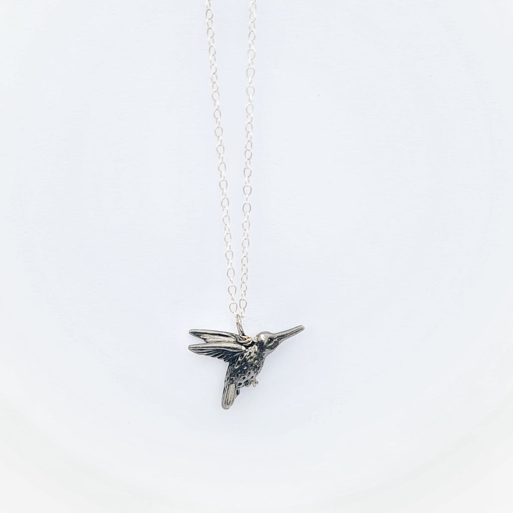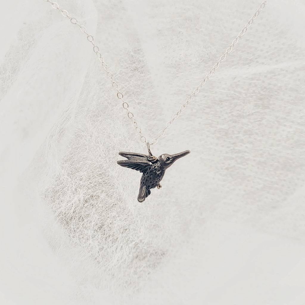 Halskjede i sterling sølv med kolibri fugl i "gun metal"