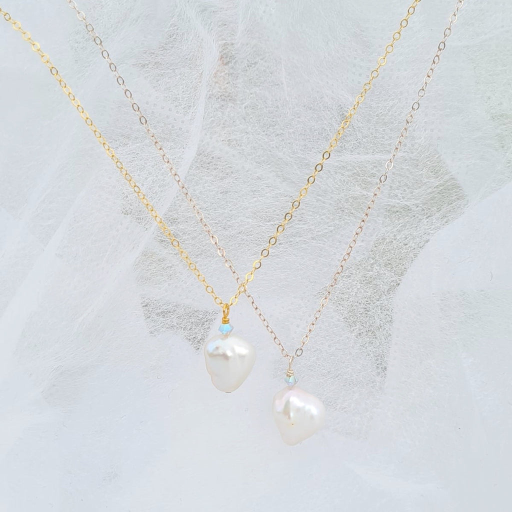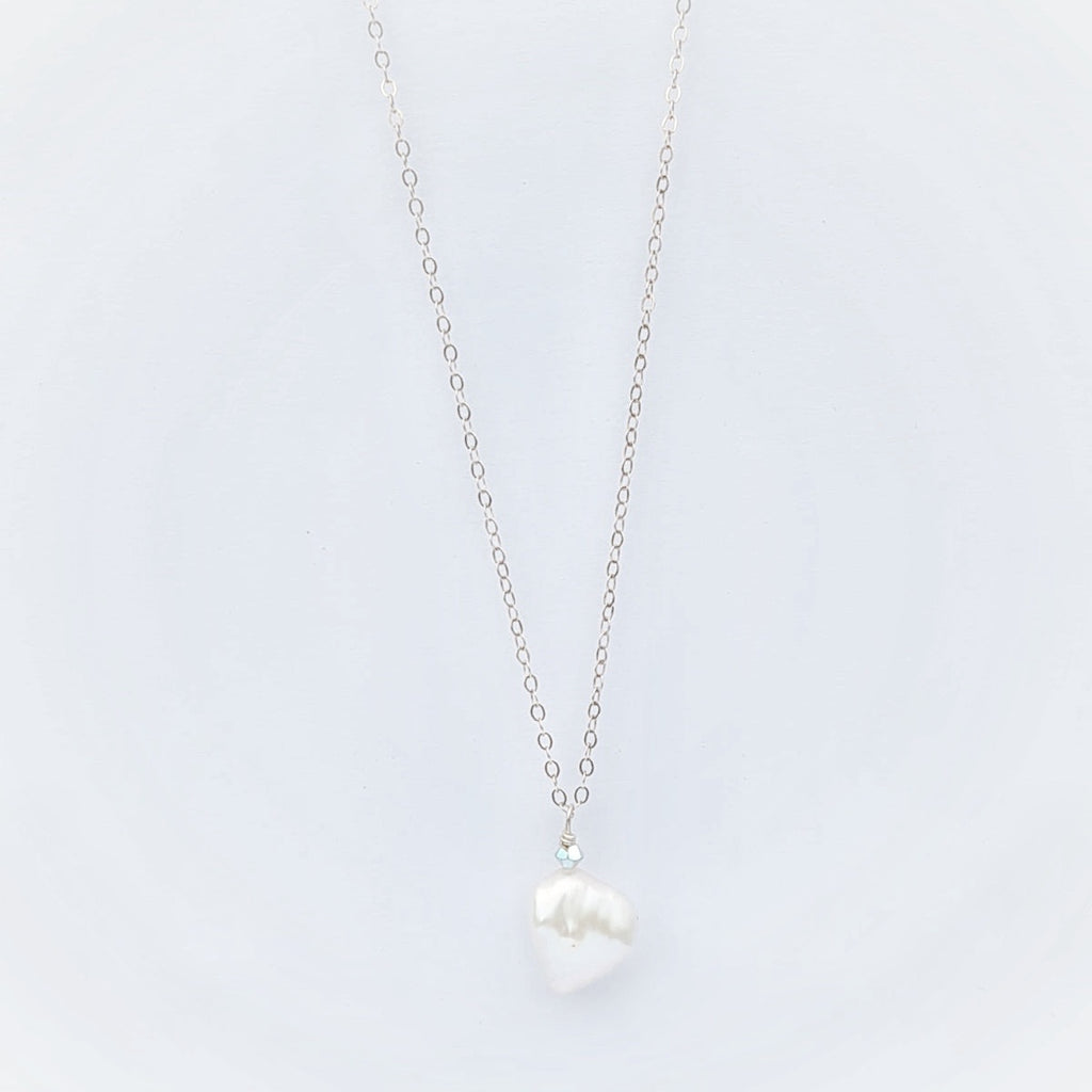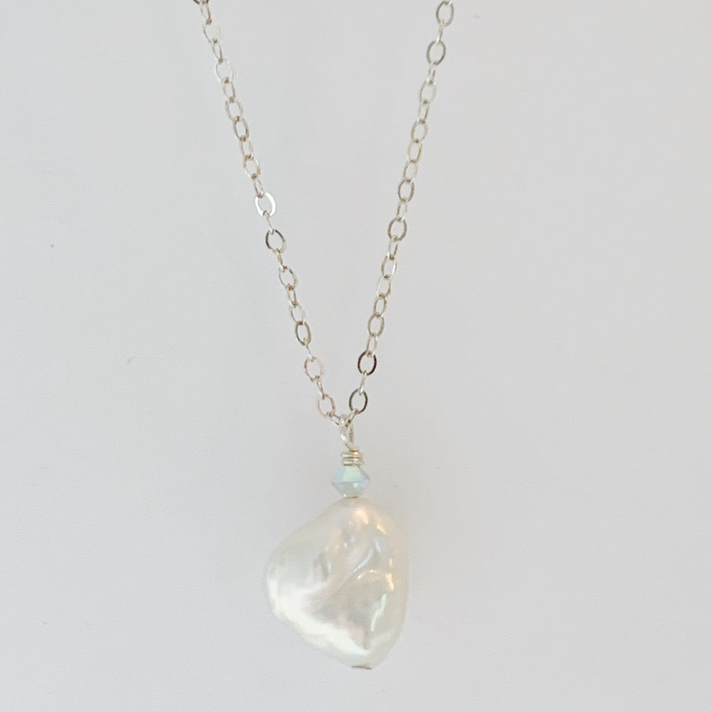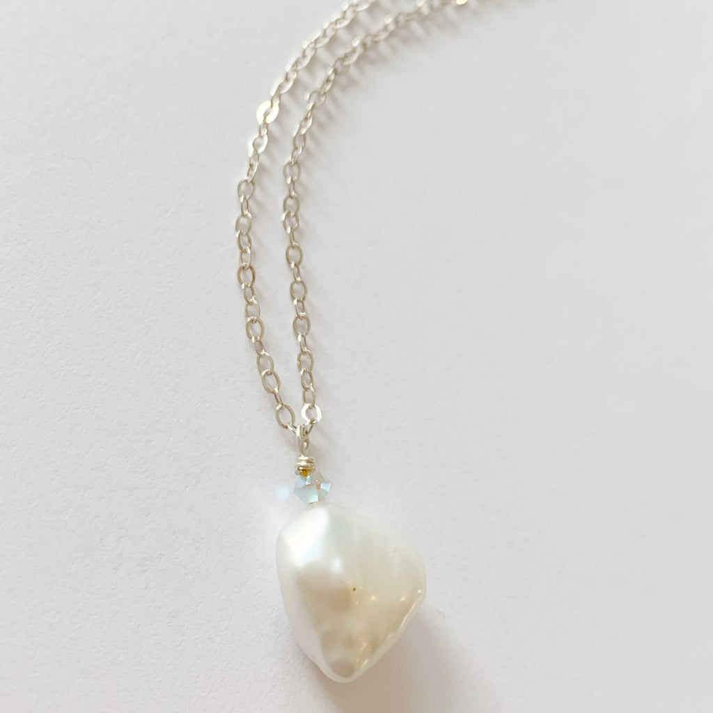 Halskjede i sterling sølv med ferskvansperle og liten Swarovski krystall i champagnefarge