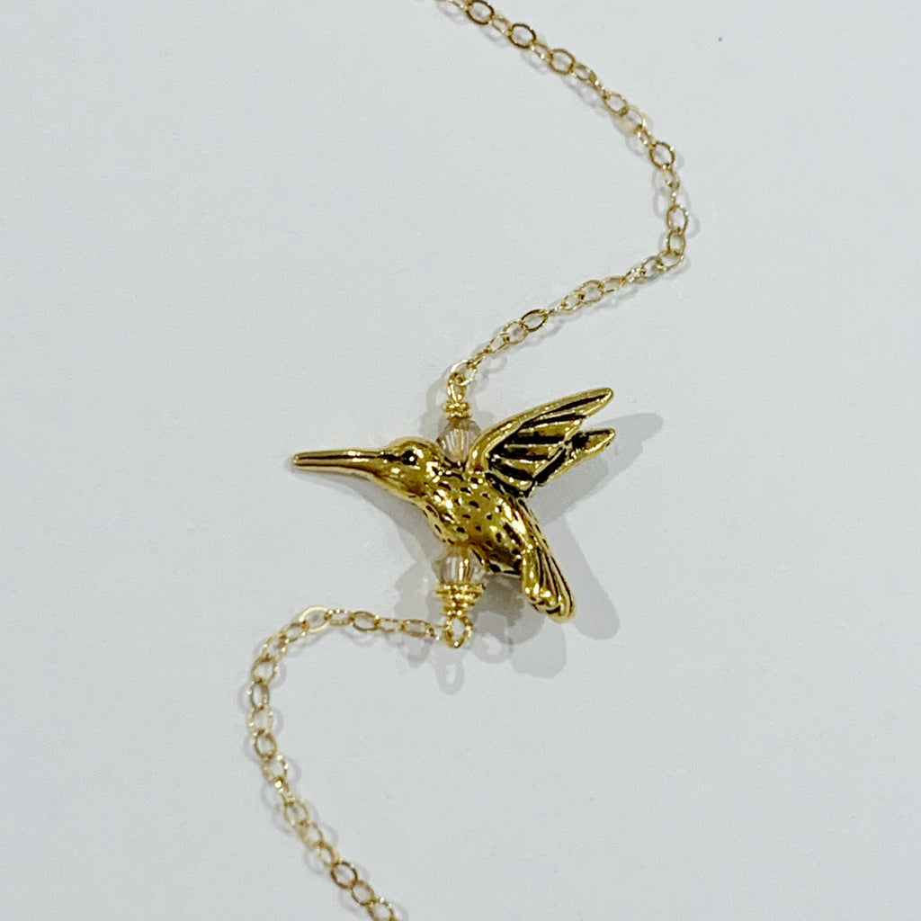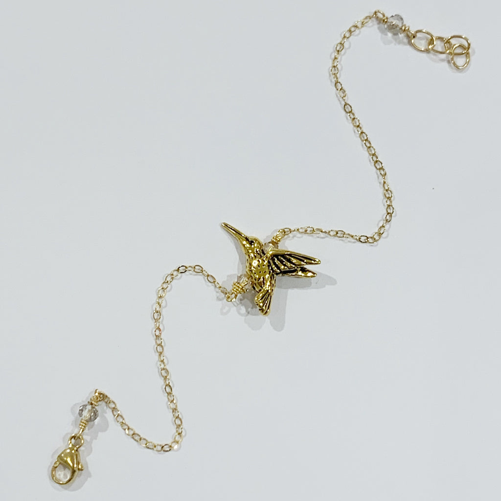 Armbånd i 14 karat gullbelagte materialer med kolibrifugl og Swarovski krystaller